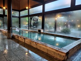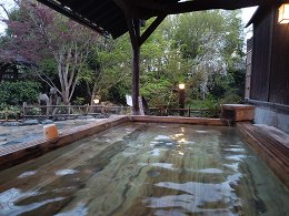 ドライブの帰りにどこかで温泉に入ろうと立ち寄ったのが、「深谷花園温泉 花湯の森」です。ナビに従って走っていると、国道から逸れ、県道から逸れ、田園地帯に入っていきました。ずいぶんと変な道を通るなぁと思ったら、そこに突然現れたのが温泉施設です。すぐ隣にはゴルフ場もあるようです。さっそく駐車場にクルマを停めて、建物に向かいますが、何やらとても高級そうな雰囲気が漂います。まるでちょっと格式のある老舗の和風旅館にでも向かうようなアプローチです。館内に入っていざ受付をしようとすると、受付の方が「あと数分で割引になりますよ。どうなさいますか?」と丁寧に説明をしてくれました。どうやら夕方から割引料金になるようです。ほんとあと数分程度だったので、お言葉に甘えて待つことにしました。杓子定規ではなく、しっかりと対応してくれることに、とても好感を持てました。時間になり受付をして、さっそく浴場を目指します。浴場は館内の奥の方にあり、廊下をずっと進んでいきます。それにしても館内も静かで優雅で、本当にどこかの純和風の高級旅館にでも来ているような雰囲気です。施設内には岩盤浴施設や貸切風呂もあるようです。脱衣所に入るとコイン返却式のスチールロッカーが並びます。こちらもゆったりとしていて、シンプルながらも品のある佇まいです。そして浴室に入ると、手前側に洗い場、そして正面には横に広い大きな湯舟があります。また、天井が高くて木造の梁も立派です。床は石畳ですが、十和田石を使用しているそうです。窓も大きく明るく、とても優雅な内湯です。そして窓の外には露天風呂が広がっていました。もう見るからにテンションが上がるような優雅な雰囲気に圧倒されます。露天風呂に出ると正面には大きな岩風呂があります。巨石が配されていて、池のように広い湯舟です。温度はわりとぬるめで、まったりじっくりと浸かることができます。お湯は「薬師の霊泉」と書かれていて、天然のアルカリ性のイオン水とのことです。とても軽くて、そのわりにしっとりとした印象のある湯でした。露天風呂エリアは広く、寝ころび湯や、その奥には桧風呂、さらに奥に向かうと四つの壺湯がありました。どの湯舟も優雅な印象で、雰囲気がとてもいいです。また、さらに奥には池が広がっていて、自然の中の隠れ家的なムードを盛り上げていました。見せ方が上手いなぁと感心しました。ちょうど夕暮れ時だったので、徐々に暗くなっていく様に情緒を感じます。そしてこんなに雰囲気が過ごしやすい施設ですが、妙に利用客が少ないのも驚きです。週初めの月曜だったこともあるかもしれませんが、ほんとにゆったりとしていて、入浴客も数名がパラパラといる程度でした。すっかり気に入ってしまい、じっくりと温泉を楽しんできました。今回は利用しませんでしたが、食事処のメニューも華やいでいて、なかなか良さそうです。また機会があれば、是非とも立ち寄りたいと思う施設でした。