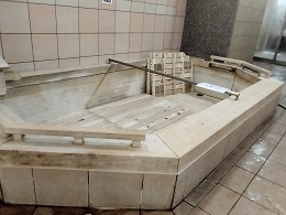 長崎県へ旅に出ることにしました。どこを宿泊地にしようか探していたところ、諫早で気になる宿を見つけたので、宿泊地のひとつとして予約することにしました。それが「天然温泉ホテルKINSHAY」です。「きんしゃい」とは、長崎弁の「来てみてね」という意味からネーミングしたのだそうです。なかなかユニークですし、諫早で天然温泉が楽しめる施設があったのは驚きです。クチコミを確認するとけっこう酷評されていたものの、安さに惹かれて予約しました。辿り着いてみると、けっこう大きな建物です。見た目にはちょっと高級なマンションのような印象もありました。館内に入るとまだ新しさを感じる綺麗な佇まいです。どうやら元々は老人ホームだったものをホテルに改装したとのことで、ゆったりとした印象がありました。さっそくチェックインして部屋に向かいます。部屋はシングルながらもとても広く、シンプルながらもとても快適です。入口の扉が簡易的な感じで、病院の個室病室という感じがあり、老人ホームの面影を感じました。まぁ、それでも改装されて新しくて綺麗で清潔的なので、なかなか快適です。ではさっそく浴場に向かいます。が、大浴場の入浴時間は男女で異なっていて、男性は夜からのようでした。しかし、別に24時間利用できるシャワーがあるというので、まずはそちらを利用しました。別館の2階にあ浴室へと向かったのですが、やはりどことなく福祉施設感のある雰囲気です。浴室に入ると、とても広いのですが壁にシャワーとカランが数基、そして回り込んだところに小さなバスタブがひとつありました。なんとも不思議な間取りです。でもバスタブがあるということは、これを利用できるということなのでしょう。さっそくお湯を溜めて利用してみました。こちらは蛇口から湯や水を入れて利用するだけなので、天然温泉ではなさそうです。とりあえずさっぱりとするには使えました。そして夜になり大浴場を使える時間帯となりました。こちらはフロント奥の1階にあります。すると浴場入口には男湯、女湯とふたつ入口があります。でも、利用しているのは1か所だけのようで、それを男女交替で利用しているようです。脱衣所はコイン返却式のロッカーがありました。ホテルでコインロッカーとは驚きました。浴室に入ると、こちらもゆったりと広い大浴場です。が、脇に桧風呂があるのですが、こちらは湯が入っていません。また、大きな主浴槽の一部が寝湯のようになっていますが、こちらも湯は入っていませんでした。ということで大きな浴槽がひとつだけです。奥には洗い場があり、また、サウナと水風呂もあり、なかなかつくりは立派なものです。さっそく体を流して湯に浸かってみます。無色透明の綺麗な湯で、あまり気になるような癖もなく、けっこうあっさりとしています。単純温泉なのかと思ったのですが、後で脱衣所の温泉分析表を見ると「ナトリウム・カルシウム(・マグネシウム)-塩化物・炭酸水素塩温泉」とありました。それなりに成分は含まれているようです。確かに浸かっていると、妙に重たさも感じる湯でした。外側には露天風呂もあるようです。扉を開けようとしたら鍵が閉まっていました。どうやら露天風呂も閉鎖されているようです。露天には大きな歩行浴があるようでしたが、しばらく利用されていない様子でした。とてもゆったりとした雰囲気だったのですが、残念です。施設として再利用できるところは利用するけれども、なるべく運用コストを下げようと努力しているようです。しかしながら、料金も安くてゆったりとサウナや天然温泉も利用でき、なかなかコスパはいいように感じました。酷評するような感じではなかったので、安心して利用できました。