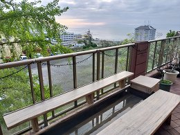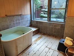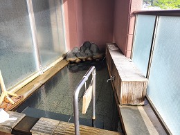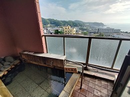 島原半島の西側にある小浜温泉にやってきました。小浜温泉はもともと海岸に湧き出ていた温泉を活用した温泉地だそうで、現在でも温泉街のあちらこちらからもくもくと湯けむりのあがる、とても風情ある温泉地です。今回は宿泊してのんびり過ごそうと、寿楽という宿を予約しました。場所は雲仙西登山口交差点から坂道を少し登った高台にありました。元々は別の組織が運営する保養所だったそうですが、リノベーションして新しくオープンしたホテルだそうです。さっそくチェックインすると、フロントで館内の説明を受けますが、とても丁寧に対応してくれました。いくつか浴場があるようなので、さっそく温泉巡りスタートです。浴場は館内2階にありました。自分の部屋も2階だったので、浴場に向かうのがとても楽ちんです。浴室に入るとわりと小ぢんまりとした雰囲気です。右奥に洗い場があり、正面には水風呂、左側には湯舟がひとつあります。そして外側にはベランダのような狭い空間に小さな露天風呂とサウナがありました。かなり小ぢんまりとした浴室ですが、女湯は少し広くなっているそうです。そのため、翌朝には男女が交替になるとのことでした。さっそく湯舟を楽しみます。お湯は無色透明の湯ですが、湯口の部分は赤茶色の付着物が見られます。けっこうがっつりとこびりついているので、それなりに成分が溶け込んでいるのでしょう。露天風呂はほんと狭い感じですが、外気を浴びながらの爽やかな気分を楽しめます。また、湯舟に浸かってしまうと見えませんが、ベランダ状になっているので、立ち上がると海岸から街並み、山々の景色までパノラマに広がる景色を楽しめます。これはなかなかいい感じですね。湯は内湯と同じように湯の注ぎ口部分だけ温泉成分がこびりついています。また、内湯よりも熱めです。いや、露天風呂が普通で内湯が少しぬるめって感じですかね。とても気持ちよく利用できました。そして、この宿には貸切風呂もいくつかあるようですので、そちらも利用してみました。貸切風呂は1階にありました。フロントで利用を告げると案内をしてくれます。こちらはなかなか高級感の漂うもので、大きな陶器の湯舟がありました。浴室エリアはわりとゆったりとしていて、床は板が敷かれています。けっこうゆとりがあるので、小さな子ども連れの家族や、カップルでも余裕を感じるぐらいのサイズだと思います。外側はガラス窓になっていますが、山側にあるので景色は眺められません。しかしながら、大きな岩を重ねた箱庭があって、見た目にもなかなか楽しませてくれる工夫がされていて、とても優雅な気分で浸かることができました。50分間という短い時間ですが、存分に楽しませていただきました。浴後は食事処兼ラウンジで寛ぐことができます。しかも、な、なんと、ラウンジ内ではアルコールも含むドリンクが無料で楽しめるのです。日本酒、焼酎、ウイスキー、瓶ビールなども飲み放題なので、浴後に最高の気分で休むことができます。おかげさまですっかり気分も盛り上がり、しっかりと熟睡することができました。そして翌朝になり、朝風呂は広い方の浴場となりました。こちらは湯舟が広く、そして熱い湯とぬるい湯のふたつの湯舟に区切られていました。やはり広さが全然違いますね。そして露天風呂はベランダ状の場所に同じようにあり、こちらは同じく狭い感じでした。ちなみに、1階ロビー脇のテラスには足湯もあり、温泉三昧を楽しめる充実した宿でした。ほんと居心地がよく、また機会があれば宿泊しに訪れたいと感じました。