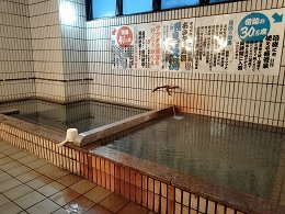 郡山駅からほど近く、昭和通り沿いにある「ホテル シーアンドアイ郡山」というビジネスホテルに宿泊してきました。ここは天然温泉が売りとなっている、郡山市内でも珍しいビジネスホテルです。ところが、宿泊当日の昼間にホテルから電話があり、ボイラー故障のため大浴場が利用できなくなってしまったと連絡がありました。当日なのでどうすることもできず、そのままホテルに向かうことにしました。夕方になってホテルに到着すると、シャワーやカランは水しか出ないのだが、湯舟とサウナは利用できるようになりましたとのこと。諦めていたのですが、まさかの展開でラッキーです。さっそくチェックイン直後に浴場に向かいます。浴場は2階にありました。すると利用時間が男女別に書かれています。どうやら浴場はひとつしかなく、時間帯により男女が入れ替わって利用するようです。ボイラー故障による影響なのかもしれません。幸いにも男湯になった直後でした。暖簾をくぐるとすぐ目の前にはリクライニングシートの並んだ休憩間がありました。そして右奥に狭い脱衣場があります。とても狭いので、想像以上に小ぢんまりとした浴場のようです。浴室に入ると、手前側にいくつか洗い場があり、そして正面には左右ふたつに区切られた湯舟、また脇にはサウナがあります。確かにとても狭くて小ぢんまりとした浴室ですが、利用者が少なければ問題なさそうです。そして、ビルの一角にある浴場なので、窓も小さな天窓があるだけの閉塞的な印象がありますが、湯舟側の壁に書かれた温泉の説明がやたらと力強さを感じます。それによると、右側の湯舟は源泉そのままの30.5度、左側は加熱された41.5度の温泉とのことです。白いタイル張りのシンプルな浴室ですが、湯舟の周囲だけ少しだけ赤茶色に変色しているので、只者ではない雰囲気が漂っていました。さっそく体を流そうとシャワーを浴びますが、とても冷たいです。そうですね、シャワーは故障中でした。湯舟から洗面器で湯を浴びて体を流しました。お湯はほとんど無色透明ですが、微妙に濁りがあるような無いような感じです。湯舟に浸かると、ほんの少しツルッとした滑らかさを感じます。また、独特なミネラル臭さを感じる温泉臭がありました。湯舟は壁側にジェット噴流のような湯の注ぎ口があり、循環されているようです。湯舟の一角は浅めになっていて半身浴もできるようです。しばらく浸かっているとジトーッと汗が出てきました。体がしっかりと温まったところで、源泉浴槽に入ります。こちらは冷たいというほどでもなく、ぬるいというほど温かいわけでもない、絶妙な温度です。こちらはかけ流しになっているのでしょう、壁から注がれた源泉は、そのまま湯舟から溢れ出ているようでした。また、源泉ということもあるでしょうが、しっかりと温泉臭を強く感じます。飲泉も可能なようで、それは休憩室で飲めると壁に書かれていました。湯舟へ注がれている湯もそうだろうと、少し飲んでみましたが、鉄分強めのミネラル臭がありますが、わりとマイルドな感じです。それにしても絶妙な温度で、じっくりと浸かっていられます。20分から1時間ほど浸かるようなことを書かれていますが、さすがに1時間は冷えてしまうと思います。体が冷めてきたところでまた温かい湯に浸かります。これがまた本当に気持ちよくて、病みつきになりそうな塩梅です。サウナとのインターバルも気持ちいいでしょう。こんな個性的でしっかりとした温泉がビジネスホテルで利用できるなんて、楽しすぎますね。肉体労働も頭脳労働もどっちの仕事の疲れもここでリフレッシュできそうですね。すっかり気に入ってしまいました。今回は利用時間に制限があり、もうちょっとじっくりと味わいたかった感もあったので、また機会があれば宿泊で利用したいなと感じました。