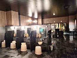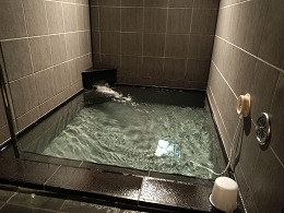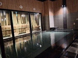 福島駅のすぐ目の前にドンと構える優雅なビジネスホテルが「ホテルルートインGrand福島駅前東口」です。2025年2月にオープンしたばかりの、とても新しいホテルです。天然温泉の大浴場を備えた優雅なビジホということで、機会があって宿泊で訪れました。ルートインは一般的なビジホですが、ここはGrandと名前についていて、ちょっと高級感のある佇まいです。ロビーも優雅でとても格式を感じるような、そんな洗練された雰囲気を醸し出しています。チェックインを済ませて、客室に入りましたが、シングルながらも部屋はそこそこ広く、そして設備もしっかりとしています。とても居心地が良い感じです。そしてさっそく浴場に向かいます。客室のモニタで浴場の混雑具合がわかるので、これはありがたいです。男性用は2階、女性用は1階に浴場があるようです。エレベータを降りると、その左奥に「旅人の湯」という浴場がありました。脱衣所に入ると、これまたゆったりと広いです。ビジホでこれだけ広いのも珍しいです。ホテルの規模も大きいので、その分だけゆったりとしている感じです。まだ新しい施設なので、優雅で清潔的で、とても気持ちがいいです。浴室に入ると、こちらもビジホにしてはゆったりと広めです。洗い場もいくつもあるので、多少混雑気味でも問題なさそうです。浴室は内湯のみですが、ゆったりとしたサウナと水風呂があり、そしてゆったりとした湯舟がひとつありました。湯舟の前には地窓風のガラス越しに竹を配したモダンアート的な坪庭がディスプレイされています。浴室全体は御影石のシックで落ち着いた雰囲気なので、とても洒落た印象を受けました。さっそく湯舟に浸かりますが、こちらは無色透明の透き通った湯です。少し熱めの湯かなって感じで、内湯しかないので少し浸かっていると、すぐにのぼせ気味になります。サラサラとした湯というか、特に気になるような浴感もなく、感覚的には普通の湯という印象です。天然温泉ということですが、ここで湧出したものではなく、土湯温泉からの運び湯のようです。土湯温泉はここから南西に向かった山の中にある大きな温泉地です。とても古い歴史のある温泉地で、鎌倉時代の文献にも登場しているほど昔から愛されている名湯です。また「土湯こけし」で有名なところで、土湯温泉のマスコットもこけしになっているほどです。そんな土湯温泉ですが、このホテルに利用されている温泉は単純温泉ということで、浴感としてはあまり特徴のないものとなっていました。ただ、温泉分析表によると、微弱硫化水素臭とあります。運ばれてきている湯なので、浴室ではまったく感じられなかったのが残念です。それにしても浴室の雰囲気はとてもいいです。シンプルな浴室なので、ボーッと仕事の疲れを癒すにはちょうどいいかもしれません。欲を言えば、もっと上階につくって、街の景色でも見えるような窓があったり、露天風呂があったりすると良かったのになとは思いますが、駅前で温泉が楽しめるだけでも十分に価値があると思います。まさに旅人を癒すための湯だなと思いました。
