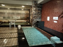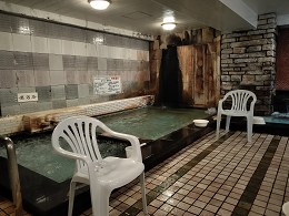 鹿児島の天文館にある「ホテルニューニシノ」という、サウナが充実したホテルに宿泊してきました。鹿児島市内で宿泊施設を探していて、天然温泉の浴場があるところを条件に探していたところ、ここがヒットしました。天文館公園のすぐ近く、繁華街のど真ん中にあるホテルです。このホテルの歴史は古く、大正時代初期に「西野旅館」としてオープン以来、100年以上の歴史を積み上げてきたそうです。今では温泉とサウナのホテルとして人気があるそうです。銀座通りを進みアーケードを抜けるとすぐにありました。フロントは4階にあるようなので、エレベータで向かいます。チェックインを済ませて客室に入ります。シングルルームを利用しましたが、多少年季が入ってきてはいるものの、そこそこスペースもあり快適な感じです。ではさっそく大浴場に向かいましょう。大浴場はフロントと同じ4階にありました。ちなみに大浴場とサウナは男性専用です。不定期でレディースデーが開催されることもあるみたいですが、一般的なビジホというよりは、男性向けのサウナ&ホテルという感じですかね。大浴場の入口には受付があります。宿泊者以外の方も利用できるようです。宿泊者は無料で利用できますが、受付でシューズロッカーの鍵を受け取り、履物を入れた後、シューズロッカーの鍵と引き換えに脱衣所のロッカーキーを受け取るシステムとなっていました。浴室は意外と小ぢんまりとしています。浴室に入った正面に柱があり、その下にかかり湯と洗い場、さらに右脇に洗い場があり、正面には水風呂、左側に主浴槽と気泡浴風呂がありました。パッと見渡せるほどの小ぢんまりとした浴室でした。また、手前側には備長炭蒸気サウナと、ロウリュウも行うフィンランドサウナがあります。フィンランドサウナはけっこう大きいようです。さっそく体を流して湯舟に浸かりますが、かかり湯も天然温泉のようです。湯は無色透明の微妙にしっとりとした浴感の湯です。湯舟の湯はけっこう熱めでジワッと熱さを感じる湯です。源泉温度は59度もあるそうです。ナトリウム-塩化物泉とのことですが、塩分は実感するほどはないようで、しっとりとする湯だなぁと感じる程度です。けっこう熱めなのでしばらく浸かっているとのぼせてきます。となりの気泡浴は主浴槽からのオーバーフローも加わっていますが、バブルによるものか温度は少し低めです。宿泊者以外の利用者もそこそこいるようで夜間は混雑していましたが、ロウリュウが始まると他のお客さんはサウナになだれ込んでいったので、浴室はガランとした感じになりました。人がいなくなってみると、そこそこ余裕はありますが、天井が低いせいかやはり狭く感じますね。浴後はリラクゼーションルームでゆっくりと休むことができます。テレビモニタ付きのリクライニングシートが並んだ部屋ですが、こちらはけっこう広くてゆったりとした雰囲気があり、数もたくさんありました。また、さらに奥にはマッサージルームがあったり、手前には小さな食堂があったりと、じっくりと寛ぎながら過ごせるスペースです。なかなか快適に過ごせる印象で、宿泊でなくサウナ目的でも利用しやすそうでした。使い勝手のいいサウナ&ホテルだと思いました。