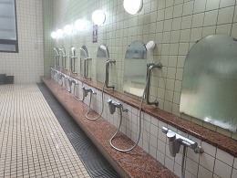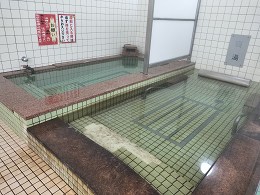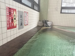 鹿児島市の北西、川内市樋脇町にある市比野温泉は、歴史ある温泉地です。薩摩藩の藩主、島津光久が猟を楽しんでいたときに見つけた温泉と言われていて、湯治場として栄えた歴史があるそうです。今でも派手さのない地味な温泉地ではあるものの、いくつもの旅館や入浴施設もあり、活気ある温泉地のひとつです。温泉街には上之湯、下之湯のふたつの公衆浴場があり、今回は上之湯に入ってきました。以前に通りかかったときに立ち寄ろうとは思ったのですが、大きな駐車場がいっぱいになるほどだったので、諦めたことがあります。今回も訪れてみると、駐車場はほぼ満車状態ですごい賑わいです。今回は平日の午前中だったのですが、そんなに混雑するのはおかしいと、入浴してみることにしました。ここは建物はとても大きいですが、保健福祉センターと併設しているためで、浴場が大きいわけではないようです。入口は駐車場のある裏側から入りました。入口で履物を脱ぎ、エレベータで1階に降りると浴場入口があります。男女の脱衣所入口前に番台と自動券売機がありました。さすがに市営の公衆浴場だけあって、めちゃくちゃ料金が安いです。シャンプーや石鹸類は用意がないので、各自で持ち込むようです。脱衣場はけっこう狭いです。手前側と奥まったところに棚とカゴがあり、また一部には簡易的な鍵付きの木造ロッカー、そしてコイン返却式のコインロッカーもありました。スペースが広くないので、何人かいると窮屈なぐらいです。浴室も小ぢんまりとはしているものの、わりとゆったりとしていました。右壁側に洗い場がズラッと並び、左側には大きな湯舟があります。正面には円形のかかり湯があり、けっこうシンプルな感じではあります。そして、たしかに浴場内はたくさんの入浴客がいましたが、そんなに混雑するほどではありせん。どうやら保健施設でのイベントに参加している方々もけっこういるみたいです。また、タイミングが悪かったのか良かったのか、こちらが入ったあと続々と他のお客さんは出ていきました。一瞬だけ貸切状態になるほどでした。浴室はとてもシンプルながらも、湯舟はとても大きくて、いくつかにわかれています。まず大きい湯舟は「ぬる湯」と「あつ湯」とに分かれていました。奥の角に湯口があるのですが、あつ湯の方にたくさん流れ込むようになっています。また、あつ湯とぬる湯は仕切りの一部が繋がっていたり、表面の湯も行き来をしているので、ある程度は混ざりあっているようです。ほとんど無色透明の湯は、あっさりとしながらもスルスルと滑らかな印象もあります。癖の少ないアルカリ性単純温泉ですが、しっかりと掛け流されているので、嫌な消毒臭もなくてとても心地よい入浴感です。あつ湯の方は確かに熱いですが、浸かれない程でもなく、少し熱い程度です。ぬる湯も少しぬるいかなって程度です。湯舟が大きいのでとても気持ちよく利用できました。その奥の方には寝湯と水風呂がありました。寝湯は1人用にしては少し大きめですが、2人では利用できないくらいの中途半端な大きさでした。あつ湯の隣にあり、湯は仕切り部分から流入するので、それなりに熱い湯となっていました。水風呂はどちらかというとぬるめの水風呂です。冷たすぎないので、火照った体を気軽にリセットできます。水風呂の前には飲泉場がありました。蛇口をひねるとドーっと湯がでます。ちょっと熱めの湯ですが、癖のない湯なのでゴクゴクと飲むことができます。常連さんなのか、ペットボトルやポリタンクを持参して、持って帰っている人もいました。飲料として利用しているのでしょか。昔からこの地域ではそのように利用されていたのでしょうね。そういう歴史も受け継がれているお湯なんだなと感じました。