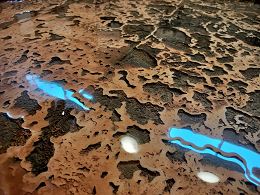 薩摩川内市入来町にある諏訪温泉という温泉旅館にやってきました。場所的には入来温泉の一角にあたるのですかね、公式ホームページでも入来温泉について書かれていました。ここは温泉旅館ですが、日帰り入浴も積極的に受け付けていて、けっこう人気のある温泉施設だそうです。今回は旅の終盤、最後に個性的な温泉に入ろうと、ここへ足を運びました。通り沿いに駐車スペースがあり、脇の坂道を降りていくと和風な感じの建物が見えてきます。軒の柱には「営業中」と書かれていて、積極的に日帰り入浴が可能であることがうかがえます。館内に入るとすぐに受付があり、入浴券の自動券売機もありました。受付をすますとそのまま正面へと抜けて浴舎に向かいます。通路のすぐ脇に浴舎があり、手前側が男湯で、さらに奥へと進むと女湯の浴舎があるようです。浴場入口は手前側と少し先にも扉があります。手前に入るとすぐに脱衣場がありましたが、その脱衣場は横に細長く、その先にも出入口の扉がありました。結局、どちらの扉に入っても同じ脱衣場に入るようです。脱衣場はま両サイドに脱衣棚とカゴがあり、浴場入口も二つあります。どうやら元々は男女で分かれていたものを、ひとつにした感じです。人気があるので、浴場を拡張したということでしょう。浴場に入ると、やはり二つの浴室がつながっています。壁は残されたままですが、手前側が通路のようになっていて、左右どちらの浴場へと行き来できるようになっていました。そして、まず驚くのが、その浴室の光景です。湯舟から湯がどんどん溢れ出て床を流れていますが、床は鍾乳石のように堆積物で模様ができています。かなり濃厚な温泉成分ってことなのでしょう。いきなり凄いものを目にしてしまった気分です。洗い場は外壁側にあります。浴場には石鹸類やシャンプーなどは用意されていないので、各自で持ち込む銭湯スタイルです。さっそく体を流しますが、洗い場の周囲もずいぶんと温泉の堆積物でコーティングされまくっています。ちょっとうがいをしようとシャワーの湯を口に含んでみると、やたらと金属臭くて驚きます。そうなんです、シャワーも温泉を利用しているようです。水は無味だったので、湯が温泉ってことでしょう。かなり鉄分臭いというか、金属的な味が強くて個性的な湯のようです。ではさっそく湯舟に浸かります。湯舟の湯はオレンジ色に近い赤茶色に濁っていました。透明度は30センチほどでしょうか、温度はちょうどよく、なかなか快適な温度です。キュッと締まるような、それでいてマイルドさも感じる個性的な湯です。湯舟は大小二つに区切られていて、小さい方はかなりぬるめの湯となっていました。湯の注ぎ口からは何も注がれていなかったのですが、湯舟の湯が減る気配がありません。すると底の方から温かい湯で出ているのに気が付きました。どうやら隣の湯舟と繋がっているようです。そこで温度調整も行っているのでしょう。続いて反対側の浴室に行ってみます。こちらはお湯がかなりクリアです。多少の濁りは感じるものの、ほぼ透明です。また、めちゃくちゃ熱いです。浸かっていられないほどではありませんが、長湯には向かないくらい熱いです。こちらも大小二つに区切られていて、小さい方が微妙にぬるいようにも感じましたが、やはり熱いです。床は同じように堆積物でコーティングされているので、酸化が進んでいない新鮮な湯ということなのでしょう。ちなみにこちらには露天風呂があります。外に出てみるとちょっと小さめの湯舟がありました。こちらはかなりオレンジ色に色付いています。そんなにぬるくはありませんが、透明度は20センチぐらいでしょうか。かなり濃厚な印象です。周囲は森というか木々に囲われているので、開放感と呼ぶほど開放感はありませんが、外気の爽やかな空気がとても気持ちいいです。湯舟を順繰りとまわりながら、しばらくお湯を楽しみましたが、ほんと凄いなぁと感心してしまいます。浴後、ふとタオルを見ると、オレンジ色に変色してきています。そんなに濃いわけではありませんが、色が着いてしまったようです。それだけ濃厚な湯のようです。けっこう辺鄙な場所に感じますが、次から次へと客も来るので、とても人気が高いようです。今回は平日の悪天候に訪れたので、これでもかなり空いていたのだと思います。時間帯によっては混雑しそうですが、とても個性的な湯なので、是非ともお勧めします。