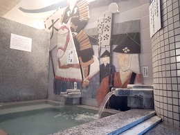 甲府市街地から車で40~50分ほど、甲州市の日川渓谷の奥に「やまと天目山温泉」という日帰り温泉施設があります。甲府から自宅のある埼玉まで帰ろうとしていたところ、せっかくなので最後に温泉に入ろうと、方角的にもちょうどよかったのでここへと目指してみました。勝沼を過ぎるとそこから山の景色へと変わります。甲斐大和駅あたりから山へと向かう県道へと入っていくのですが、これがまたけっこうな山道です。夕方のまだ明るい時間帯だったものの、天気も悪かったせいか、すれ違うクルマもなく、とても深い山の中へと向かっているような気分です。やがて竜門峡という景勝スポットを抜けてさらに山を登りますが、こんな先に日帰り温泉施設なんかあるのだうろかと不安になるほど辺境を感じるロケーションでした。しばらくしてようやく施設が見えてきましたが、意外なことに駐車場にはいくつものクルマが並んでいます。また、バスも通るようでバス停には登山客らしき人がいました。なるほど、登山帰りの方が立ち寄るような温泉施設なのですね。建物は新しいってほどでもありませんが、わりとモダンなスタイルだと感じました。自動券売機で入浴券を購入しますが、市内と市外とで料金が変わります。市内の方はお得に利用できるようです。そろそろ夕暮れ時ということもあり、続々と客も帰っていく感じで、まさに入れ違いというところでした。購入した入浴券を受付に出そうとしたら、「帰るときに出してください」とのことです。利用の時間制限があるので、入浴券のタイムスタンプで判断しているようです。建物は横に細長く、広い休憩所や食事処もありました。とても山奥にある施設とは思えないほど、盛況していました。脱衣所にはコイン返却式のロッカーと、簡易的な棚とカゴがあり、わりと小ぢんまりとした様子です。浴室はそこそこゆったりとしていて、内側にボディソープとリンスインシャンプーの用意された洗い場、窓側に湯舟があります。湯舟は右手奥に寝湯が並び、手前側は源泉浴槽とバブルのついた主浴槽がありました。壁にはとても立体的なタイル画があるのですが、武士が描かれていました。笠に武田菱のマークがあるので、武田信玄なのでしょうか?何の場面を描いているのかはわかりませんでした。さっそくお湯に浸かりますが、無色透明の湯ながらもツルツルスルスルヌルヌルとした、とても滑らかな浴感があります。これがまた、本当に気持ちが良くて、うっとりとするくらい感触がいいです。また、お湯の温度も高くなく、少しぬるめな感じも長湯向きです。源泉浴槽はけっこうぬるめです。冷たくない程度の温度で、これまたさっぱりと気持ちがいいです。なるほど、こんなにも個性的な湯なら、わざわざこんな山奥まででも入浴しに来たくはなりますね。外には露天風呂もあるようです。外の扉を開けるとすぐに階段があり、そのままワンフロア分おりていきます。すると手前側に浅くて小さな湯舟、そして階段の下側に岩風呂がありました。手前の小さな湯舟は奥の岩風呂からのオーバーフローなので、かなりぬるいです。子ども用ってことですかね? 大きさも深さも中途半端な感じの湯舟でした。外側は森になっていて、景色が見えるというより、木々が見えるという感じで、そんなに開放感はないものの、静かな山の中という雰囲気が味わえます。けっこうのんびりとした雰囲気が気持ち良くて、ついつい長湯になってしまいましたが、利用客も地元の常連客が多いようで、皆さん挨拶をしたり世間話をしている様子です。とてもローカルな雰囲気を楽しみながら、じっくりと過ごすことができました。登山帰りでなくても、この個性的な温泉を楽しみに訪れる価値はあると思いました。
