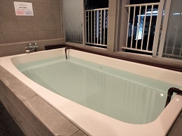 沖縄が好きなので那覇には比較的よく来ますが、自分の中で最近は「那覇は飲むところ」という位置付けになってしまっています。観光というよりは「飲むこと」がメインになってきてしまっているので、宿泊はなるべく安い場所を探して宿泊するようになってしまっています。幸いにも那覇にはたくさんの安い宿があるので、常により快適な場所を求めて宿泊先を転々としています。そんな中で見つけた宿がこちら、「CABIN&HOTEL CONSTANT NAHA」というサンライズ通りにあるキャビンスタイルの宿です。できた当初からずっと気になっていたのですが、今回、試しに泊まってみることにしました。とてもリーズナブルに利用できる宿ですが、とてもモダンなスタイルで雰囲気は悪くありません。周囲にはセンベロや飲み屋がいっぱいあるので、さまに最高の立地です。さっそくチェックインすると、カウンター脇の機械でチェックインの手続きをして、カードキーを受け取ります。カウンターで説明を受けたあと、部屋に向かいました。キャビンなのでけっこう狭いですが、とても綺麗で機能的、居心地は悪くありません。そしてこの施設には大浴場もあります。大浴場は建物の6階にありました。エレベータを降りると、すぐそこからスリッパや靴などを脱いで、下足禁止エリアになっています。脇にはコミックの並んだロビーがあり、休憩スペースも快適そうです。脱衣所の扉はカードキーをかざすことで開くシステムとなっていました。脱衣所は簡易的な鍵のかかるロッカーとなります。ただ、いくつかのロッカーは鍵がかからなかったり、壊れていたりしました。まだ比較的新しい施設なので、とても意外に感じました。ただ、とても清潔感はあって雰囲気はいいです。浴室はボディソープ、シャンプー、コンディショナーが用意された洗い場、そしてサウナ、水風呂、大きな湯舟があります。大浴場付きのビジホクラスのゆったりとした浴場です。沖縄で大浴場がある施設はまだまだ少なく、シャワーのみの施設も多いので、これはとてもありがたいです。それにサウナまでもあるとは、その充実ぶりに驚きます。体を流してさっそく湯舟に浸かりますが、この湯舟がまたゆったりと開放感があります。というのも、湯舟は普通のバスタブをデカくしたような、そんな感じのシンプルなものですが、窓が大きく開放されていてとても爽やかなのです。このときは6月中旬、沖縄は既に梅雨明けしていて真夏です。開放された窓から風が入り込んで、とても気持ちがいいです。また、周囲に高い建物は少なく、ゴミゴミとした街並みを見下ろすように眺められるのはとても気分がいいです。もちろん男湯だからこそ、ここまで開放的なんでしょうが、とにかく大らかな感じでまるで展望露天風呂気分で入浴が楽しめました。湯舟の湯は簡易的に循環されているようです。脇にある蛇口から、湯や水を注ぐことで温度調整ができるようです。けっこうぬるめになっていたので、お湯を継ぎ足しながら入浴していると、けっこう温かくなってきました。でも、沖縄らしくぬるめの湯でちょうどいいと思います。一人旅など、キャビンタイプにも慣れている方なら、とても快適に過ごせる宿として、オススメの宿だと感じました。