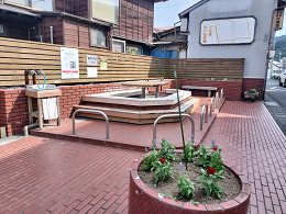 街角に佇むレンガ調の洒落た足湯