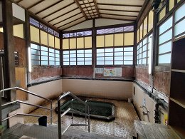 日本を代表する温泉天国、別府温泉郷。自ら温泉県と自負する大分県の中でも、やはりここは別格ですよね。その別府温泉郷の中心地、別府温泉にある「永石温泉」に立ち寄ってきました。ここは南町にある昔ながらの共同湯です。てっきり小さく素朴なスタイルを想像していたのですが、木造の古風ながらもしっかりとした立派な建物で、まるで文化財のような佇まいです。竹瓦温泉っぽさを感じる風格がありました。玄関を入ると番台があり、その右手側が男湯、左手側が女湯のようです。さっそく受付をして脱衣所に入ります。するといきなり脱衣場です。そして正面には湯舟が見えます。まずは履物を棚の下の部分に収納し、服を脱ぎます。湯舟と脱衣場には仕切りはなく、同じ空間にありますが、湯舟は数段低い場所にあり、階段をおりていくように向かいます。また、天井はとても高いこともあってか、広さでいえばかなり狭いのですが、とても広くゆったりとした印象がありました。周囲はガラス窓になっていて、とても明るいというのもあるでしょう。すぐ外側は交通量の多い道路と交差点なので、それなりの喧騒はありますが、妙にゆったりとした雰囲気がありました。浴室部分は中央に湯舟がひとつ、そして洗い場のようなカランはありません。ボディソープや石鹸類も用意されてなく、ただ湯舟があるだけです。洗面器は用意されているので、湯舟脇を陣取り、洗面器で直接湯舟の湯を汲んで、体を洗うのが風習のようです。お湯は無色透明のとても綺麗な湯です。けっこう熱いとか熱湯だというクチコミもありましたが、このときはそんなに熱くはなかったです。誰か加水してくれた後だったのでしょう。とはいえ、それなりに熱い湯ではあるので、しばらく浸かっているとけっこうのぼせてきます。脇に水のシャワーがあったので、湯上り前にここでクールダウンするといいでしょう。お湯はかなりあっさりというかさっぱりとした湯で、熱さもさっぱりとしているので、意外と浴後はサラッとする感じがありました。ところで湯舟からは湯が溢れ出ているものの、湯の注ぎ口が見当たりません。脱衣所側に源泉の枡があるので、そこから湯舟の底へと注がれているようです。湯舟の一角に穴があいていて、そこから熱い湯がモワモワっと注がれているようでした。ちなみに昔はこの湯のことを「一夜温泉」と呼ばれていたこともあるそうです。その由来は、地元有志が温泉を掘ったところ良質の温泉が出て、その利用法について模索しているうちに夜には小さいながらも木造の温泉場が出来上がっていたので「一夜温泉」と呼ばれるようになったとのことでした。温泉地らしい言い伝えが面白いですね。さて、しばらく浸かっているとホントに汗だくです。もう喉がカラカラだったので、出ることにしました。浴場を出ると、交差点の向かいにはコンビニがありました。また、浴場脇には御影石で作られた湯あがり空間(ポケットパーク)もあったので、コンビニでアイスと飲み物を買って、ここで休憩しましたが、ほんとに気持ちよくて快適な湯上りタイムを過ごせました。駅からはちょっと離れていますが、散歩ついでに湯めぐりすると、意外な発見もあり楽しいです。別府に来たら是非と楽しんでみてください。