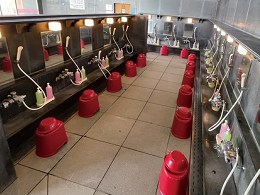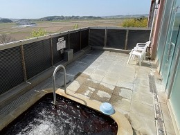 宮城県の北東部にある涌谷町は、田園地帯の広がる長閑な田舎町です。天平21年(749)に日本で最初に金を産出させた場所として、歴史の古い町でもあるようです。「わくや天平の湯」は涌谷町の小高い丘の上に建つ日帰り温泉施設です。夏休みを利用して遊びにやってきました。けっこう大きな温泉施設で、隣接して農産物の物産館もあるなど、観光ついでに立ち寄るのも楽しい場所です。館内もゆったりと広く、それなりに賑わう人気の温泉施設のようです。1階のエントランス脇には小劇場という、イベント会場があるようです。定期的に演劇が行われていたり、宴会場としても利用されているようです。この日はカラオケの日となっていて、常連さんでしょうか、楽しそうに熱唱していました。受付を済ませると、浴場は2階にあります。浴室は洋風と和風とあるようで、定期的に男女が入れ替わるのでしょうか?この日は洋風が男湯となっていました。脱衣所はガランととても広くてゆったりとしています。コイン返却式のロッカーがズラッと並んでいて、それなりのキャパがありそうです。この日は平日とあって、客は少ないようでした。脱衣所を抜けると浴場になりますが、こちらもゆったりと広い空間の内湯です。天井が高いので、内湯ながらも開放感のある雰囲気です。見上げると鉄筋の梁が組み合わさり、けっこうダイナミックな印象です。浴場は手前側に洗い場があり、奥に大きくゆったりとした湯舟があります。外側はガラス窓になっていて、とても明るく感じます。ガラス窓の奥には露天風呂もあるようでした。湯舟は寝湯やバブルバスなど、いくつか並んでいますが、それぞれ「第1源泉」とか「第2源泉」と書かれているため、湯舟によって泉質が異なるようです。第1源泉は「低張性アルカリ性」の温泉で、第2源泉は「ナトリウム塩化物硫酸塩泉・低張性弱アルカリ性温泉」とのことです。まずは第1源泉の湯から入ってみます。無色透明の湯ですが、浸かるとツルツルとした滑らかな浴感を感じます。これがまた、けっこう強めのツルツル感で、肌の感触がとても気持ちいいです。俗にいう「美人の湯」というやつですね。これはなかなか好印象の湯です。第2源泉の湯も、見た目にはほぼ無色透明の湯ですが、こちらもっとサラサラとしていて、少ししっとり感を感じる湯でした。こちらの湯は湯冷めしにくい湯として評判なんだそうです。続いて外にある露天風呂へと出てみます。ガラス戸を開けて外に出てみると、意外と小ぢんまりとした湯舟の露天風呂でした。ベランダ状になったスペースに小さな湯舟とデッキチェアが並んでいます。湯舟はジャグジーになっていて、ブクブクと激しく湯が踊っています。内湯がゆったりとしていたので、小ぢんまりとした露天風呂がちょっと窮屈にも感じます。また、ベランダ状になっていることもあって、湯舟に浸かってしまうと、柵が邪魔で景色を眺められないのも残念です。せっかく見晴らしの良さそうなロケーションなだけにもったいなく感じました。利用者はそれなりにいましたが、ほぼ常連さんなのでしょう。皆さん挨拶をしたり談笑したりしていました。また、サウナが人気なようで、そちらはけっこう混雑している様子でした。とても雰囲気は良さそうな感じなので、週末などはもっと混雑するのかもしれません。異なる泉質の個性的な湯をふたつ同時に利用できる贅沢な温泉で、人気があるのも納得の施設でした。[感謝:掲載写真の一部は公式ホームページより拝借しております]