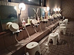 盛岡市の中心地からクルマで30分ほど、つなぎ温泉のある御所湖を過ぎてしばらくすると鶯宿温泉があります。開湯の歴史は古く、天平年間(729-749)に発見され、湯治場として栄えてきたそうです。ウグイスが川床で傷を癒しているところを見つけたことから「鶯宿」と呼ばれるようになったそうです。バブル期には盛岡の奥座敷として華やいだ時期もありましたが、その後、落ち着きを取り戻しながらも、活気ある温泉地として人気があります。今回は寿広園という日帰り温泉施設を訪れました。この施設は元々は旅館でしたが、宿泊はとりやめて日帰り温泉施設として営業していました。ところが、令和7年(2025)の8月いっぱいで、日帰り温泉もやめてしまうとのことで、急遽、その前に訪れることにしました。訪れたのはもう閉館1ヶ月を切った8月上旬です。ギリギリセーフって感じですかね。夜間に訪れたのですが、小ぢんまりとした旅館という感じがありながらも、入浴客はそこそこいるようだったので、やはり惜しまれての閉館のようです。さっそく館内に入って受付をして、浴場に向かいます。貼り紙等で告知はされているものの、特に館内では閉館間近というような雰囲気はありません。まだまだ続きそうな雰囲気がありました。浴室は左手の廊下を進んですぐのところです。また、浴場とは別に「石の湯」という石を床に敷き詰めた、遠赤外線効果を利用した施設もあるようでした。今回は入浴だけの利用です。脱衣場は小ぢんまりとはしながらも、鍵の架かるロッカーもあったりと、設備もしっかりとしています。浴室は小さな内湯と露天風呂があるようです。内湯は壁側にはボディソープとリンスインシャンプーの用意された洗い場があり、反対側に大きめの湯舟があります。けっこうシンプルな浴室です。湯舟の湯はほぼ無色透明の湯です。浸かると微妙にツルッとした感覚もある、滑らかな浴感の湯です。少しぬるめというか、ちょうどいい温度で体に負担の少なそうな感じがありました。露天風呂は奥の扉から出ることができます。扉をあけると細い通路があり、そしてすぐに湯舟があるのですが、湯舟は4段ほど段差があり、最深部は立ってヘソ上ぐらいまでの水深がありました。わりと小ぢんまりとした湯舟ながらも、この深さのある湯というのは珍しいですね。どっぷりと水圧を感じながら湯を楽しむことができます。露天風呂の奥は小さな裏庭があるのですが、夏場ということもあるでしょう、蚊帳のように網のカーテンがありました。虻よけ対策のようですね。もうすぐ山の中という自然豊かな場所にあるので、それなりに虫も多いのでしょう。自然が豊かな証拠でもあるのですが、こればっかりはやっかいですよね。真夏だけの風物詩として捉えるほかないでしょう。それにしても、小さな湯舟ながらも深さもあり、情緒もあるので、なかなか気持ちのいい露天風呂です。たまにブーンと漂う油臭を感じますが、これはボイラーの匂いですかね。灯油のような石油系の匂いが露天風呂では感じます。温泉の湯の匂いではなさそうです。トロトロと熱い湯が注がれ、そのまま排出されているようなので、掛け流されているのも魅力的です。こんなにも落ち着きのある温泉浴場が、あともう少しで閉鎖されてしまうというのは、非常にもったいなく感じます。もちろん色々な事情があるのでしょうが、ファンも多いでしょうから、残念に惜しむ方も多いことでしょう。最後に楽しむことができて、とてもよかったです。