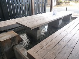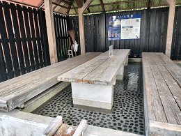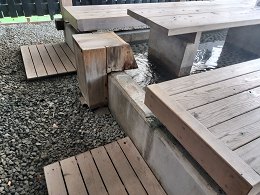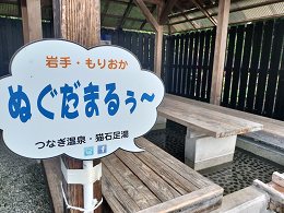 岩手県盛岡市の御所湖畔に位置する「盛岡つなぎ温泉」は、開湯900年以上の歴史を誇る「盛岡の奥座敷」です。源義家が愛馬を石につないで入浴したことが名の由来で、現在もその「つなぎ石」が残ります。また、温泉街の入口には「猫石」という巨大な石があります。文字通り、猫のような形をした石とのことです。そのすぐ近くにある「ねこいし足湯」という足湯施設を利用しました。温泉街の少し内側というか裏側にひっそりと佇むようにありました。通り沿いにあるのですが、その反対側には数台の駐車スペースも用意されているので、けっこう利用しやすい足湯スポットだと思います。大きな屋根に長方形の湯舟があり、湯舟の両脇に木製のベンチがあります。湯舟はコンクリート製で、底には玉石が埋め込まれています。足裏を刺激しながら利用できる足湯のようです。湯舟の中央にはテーブルも用意されていました。足湯のテーブルってけっこう重宝できるので、これはありがたいですね。お湯はトロトロと注がれ、反対側から溢れ出るようです。今回はまだお湯が溜まりきっていないようで、お湯は半分ほどでした。けっこう熱めの湯が注がれていて、足湯の温度も少し高めに感じます。痺れるほどの熱さではないので、足湯にするにはちょうどいい温度と言えるでしょう。お湯は無色透明で綺麗に透き通っています。けっこう硫化水素の香りが強く漂っていて、しっかりと温泉なんだなぁって実感できます。また、浸かるとツルツルとした滑らかな浴感もありました。泉質は「アルカリ性単純硫黄温泉」ということです。pHが9.1もあるので、けっこうアルカリ性の強い湯のようです。ツルツルとするのはこのせいかもしれません。硫黄温泉ということですが、特に見た目には湯ノ花の沈殿や浮遊は見られません。匂いだけがプンプンと漂っていて、とても心地よい感じです。さて、ネーミングにもなっている「猫石」ですが、それなりに大きな岩ですが、もともとはもっともっと大きく5倍くらいの大きさがあったそうです。壊されたり風化を繰り返しているので、猫の形の面影もありません。それでも伝説として語り継がれている岩なので、神聖な雰囲気が漂っていました。温泉街からも歩いてすぐの場所にあるので、散策ついでに猫石と足湯を楽しんでみるのも良いでしょう。