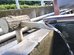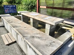 つなぎ温泉は岩手県盛岡市、御所湖のほとりに広がる温泉郷で、四季の景観を楽しめる静かな湯どころです。開湯は約900年前と伝わり、盛岡の奥座敷として親しまれてきました。湖畔に旅館が点在し、源泉かけ流しの湯や露天風呂を備えた宿が多く、宿ごとに個性あるおもてなしが売りとなっているようです。御所湖から少し山に向かったところに「つなぎ源泉公園」があります。この「つなぎ源泉公園」は、かつて「荒湯」という高温の温泉が湧き出る源泉があったそうです。湯量も豊富で、とても荒々しいことから、近寄りづらいほどの存在だったらしいです。つなぎ温泉街の主要な源泉だったそうですが、昭和35年(1960)頃から湧出量が減少し始め、平成2年(1990)に自然湧出が止まってしまったそうです。現在は別の場所から汲み上げて利用しているそうです。その荒湯の跡地を公園として整備したのが、この「つなぎ源泉公園」です。公園といっても、そんなに大規模なものではなく、むしろ小ぢんまりとした小さな施設です。公園内には荒湯のモニュメント、手湯、足湯がありました。また、温泉卵体験コーナーというのもあったそうですが、こちらは利用中止になっていました。とても綺麗に整備された公園で、さっそく手湯と足湯を楽しみにやってきました。ところが、足湯はまだお湯を溜め始めたばかりなのか、湯がまだ溜まりきっていません。まぁ、足首ぐらいまではあったので、浸かっていればそのうちいっぱいになるだろうと、利用することにしました。湯は竹筒の湯口からトボトボと注がれています。わりと熱めの湯で、湯舟の湯もそこそこ熱めです。足湯にはちょうどいい温度なのですが、今回は真夏の暑い時期に訪れたので、ちょっと浸かっているだけでもしっかりと汗が出てくるほどです。でも、これが気持ちいいんですよね。足湯は長方形の湯舟の両サイドに木製の腰掛があり、湯舟の中央には大きなテーブルがあります。テーブルがあるので飲食OKなのかと思ったら、飲み物はOKだけど、食事はNGとのことでした。でも、ゆったりとしていて過ごしやすいです。湯はほぼ無色透明で、ツルツルとした滑らかな感覚がありました。また、ぷ~んと香る硫化水素の香りもけっこう強めです。泉質は「アルカリ性単純硫黄温泉」とあります。特に見た目には硫黄成分の沈殿や浮遊などはみられず、硫化水素の香りだけが漂います。しっかりと整備された公園なのですが、下の温泉街からは少し山を登っていくので、わりと利用者は少ないようです。このときもひとり後から来ただけで、ほぼ貸切状態でした。気軽に利用できながらも、快適に過ごせるのは嬉しいかぎりです。温泉たまごの体験施設は無くなってしまったものの、源泉でつくった温泉たまごは温泉街で購入できるようなので、お土産に購入してもいいのかなと思いました。散歩がてらちょっと足を延ばして、ここまで足湯を楽しみに来て欲しいと感じました。